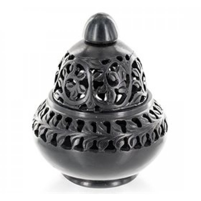 Venice - Elegant håndlavet aroma- og røgelsesholder fremstillet af sort fedtsten.