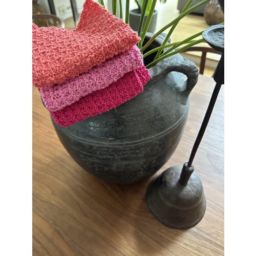 Håndlavet karklud – bæredygtig, elegant og slidstærk. Gør din hverdag mere miljøvenlig med vores bløde, håndstrikkede karklude fremstillet af 100 % bomuld. De er både miljøvenlige og yderst effektive i brug. Ideelle som en lille forkælelse til dig selv eller som en betænksom gave til en værtinde. Strikket med omhu, anvendt med fornøjelse.