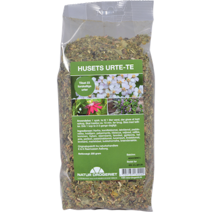 23 urter i en skøn symfoni bliver i dette tilfælde til Husets Urte-te. Du finder en række velkendte urter, hvoraf de mest kendte er kamilleblomst, pebermynteblade og passionsblomst.
