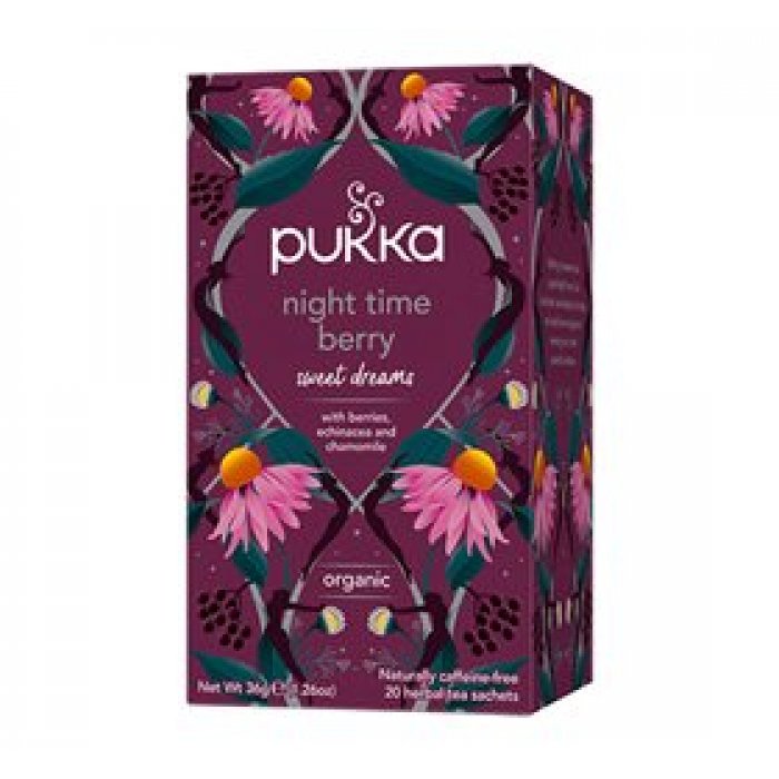 Køb din Pukka Night Time Berry fra Helsegrossisten i dag og oplev en beroligende aftenrutine.