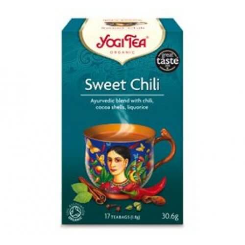 Oplev den naturlige krydrede sødme i Yogi Sweet Chili te, hvor de krydrede noter skaber en lokkende og spændende smagsoplevelse.
