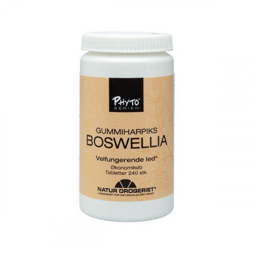Boswellia tabletter indeholder 80 mg ekstrakt, hvilket svarer til 600 mg boswellia gummiharpiks pr. tablet. Indhold pr. dagsdosis (2 tabletter): Ekstrakt svarende til 1200 mg boswellia gummiharpiks.