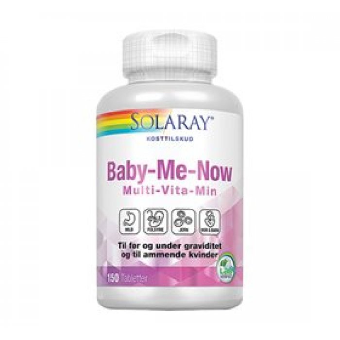 Baby-Me-Now er en unik kombination af vitaminer, mineraler og urter, der er tilpasset den gravides behov, herunder folsyre, calcium, jern og zink. Beriget med plantebaserede næringsstoffer.