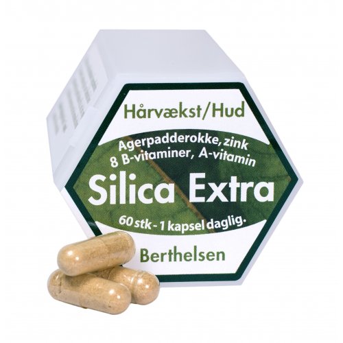 Berthelsen Silica Extra - en kraftfuld sammensætning af 8 B-vitaminer, padderokke, zink og A-vitamin.
