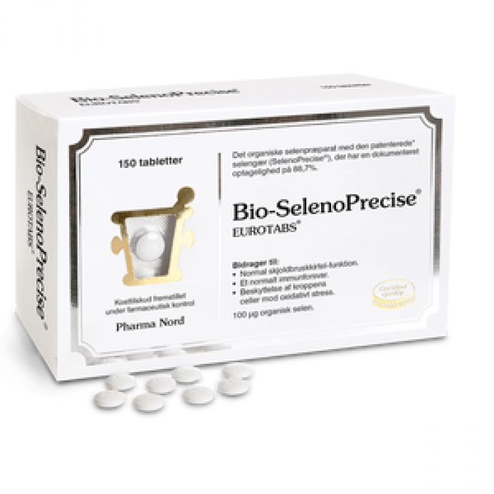 Bio-SelenoPrecise er tabletter med 100 mikrogram selen fra SelenoPrecise. SelenoPrecise er Pharma Nords patenterede, standardiserede selengær. Den indeholder ud over organisk bundet selenomethionin og methylselenocystein også mere end 20 andre organiske selenforbindelser. Bio-SelenoPrecise udmærker sig ved at kunne dokumentere en høj optagelighed og ensartet kvalitet.